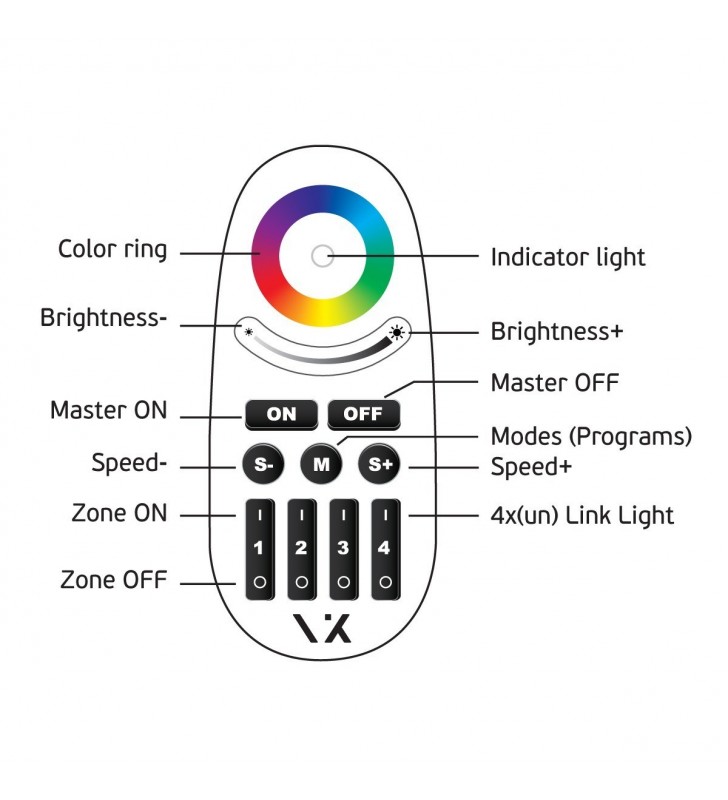 Τηλεχειριστήριο 2.4GHz 3V 4 ZONE RGB+W. IP20
