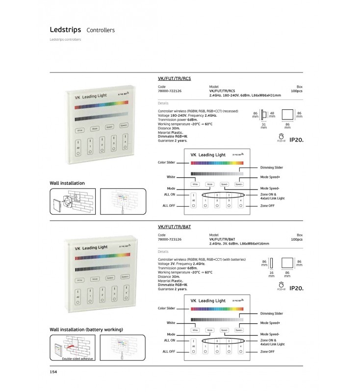 2.4Ghz RGBW Χωνευτός Πομπός 220-240V. IP20