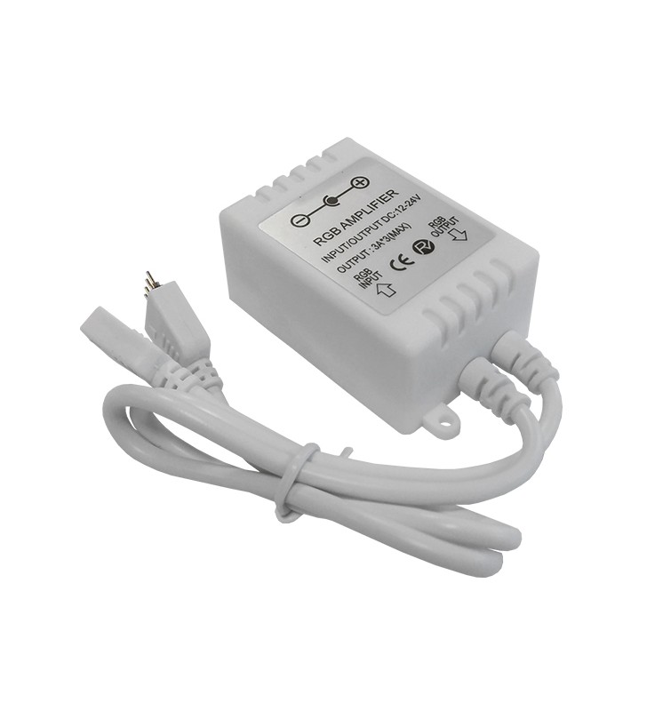 Ο Ενισχυτής RGB χρησιμοποιείτε ώστε να μπορούμε να επεκτείνουμε το σήμα από κάποιον Controller RGB και να προσθέσουμε εφόσον χρειάζεται περισσότερα μέτρα ταινίας LED. Αυτό ισχύει για οποιαδήποτε άλλη τοποθέτηση η εφαρμογή 24 Volt θέλουμε.