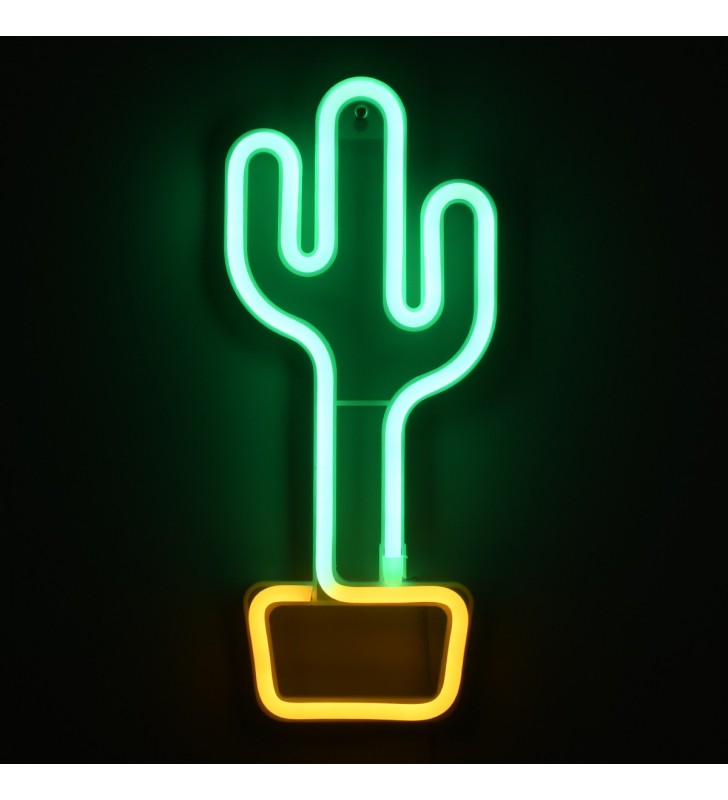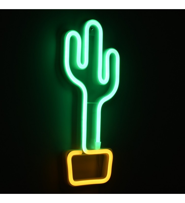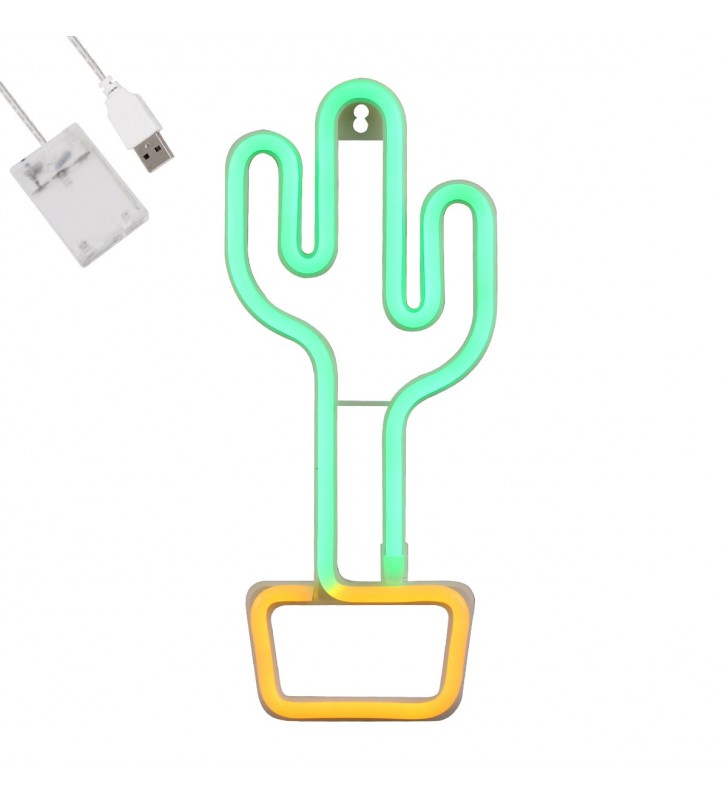 GloboStar 78574 Φωτεινή Επιγραφή NEON LED, CACTUS 5W, USB + Μπαταρίας - Πράσινο - Κίτρινο