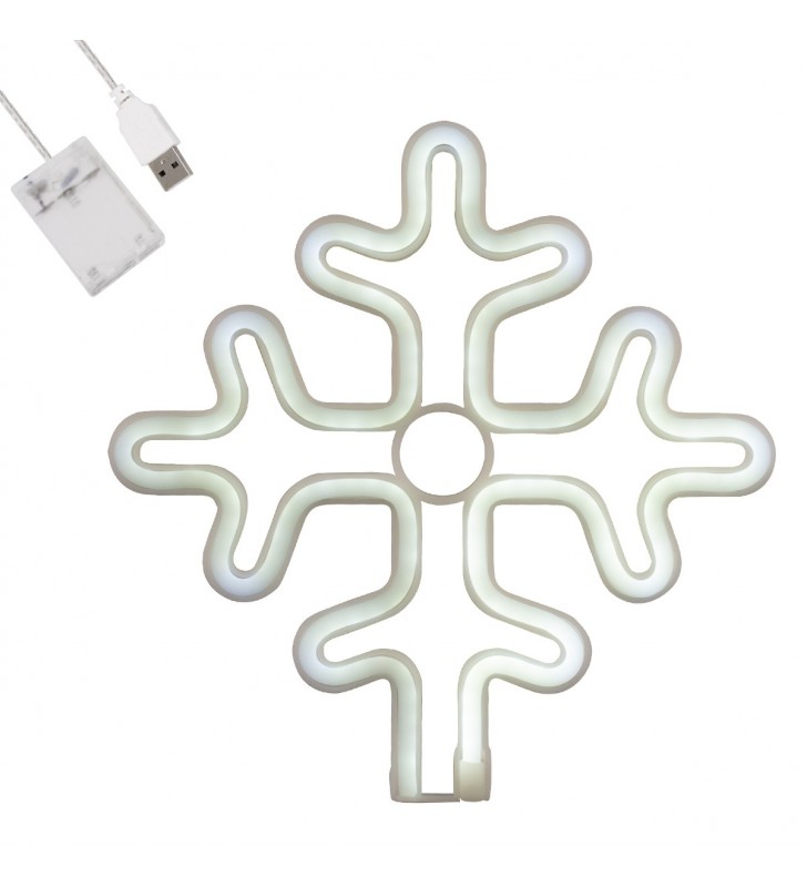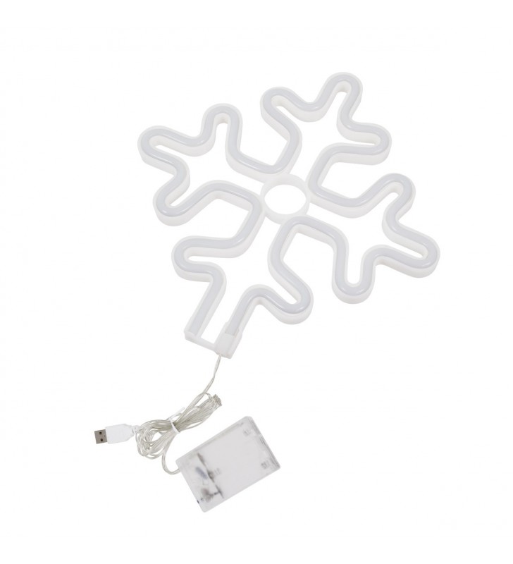 GloboStar 78581 Φωτεινή Επιγραφή NEON LED, SNOWFLAKE 5W, USB + Μπαταρίας - Ψυχρό Λευκό 6000K