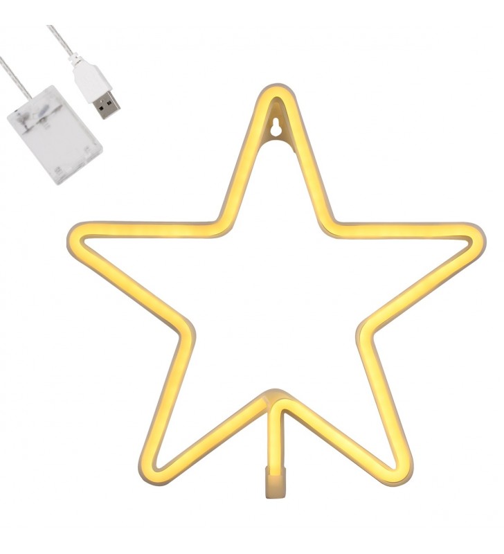 GloboStar 78583 Φωτεινή Επιγραφή NEON LED, STAR 5W, USB + Μπαταρίας - Γαλάζιο
