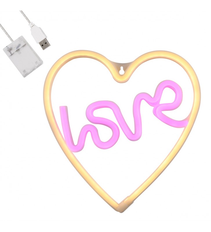 GloboStar 78587 Φωτεινή Επιγραφή NEON LED, LOVE 5W, USB + Μπαταρίας - Κόκκινο