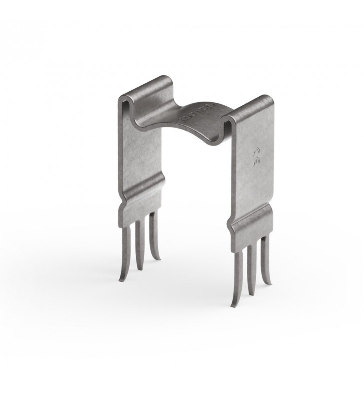 Διαθέτει τρία άγκιστρα σε κάθε πλευρά από τα οποία τα δυο ακριανά έχουν ειδική κλίση ώστε να μην τραυματίσουν τη γυψοσανίδα ή τον ξυλότοιχο καθώς εισχωρούν στο εσωτερικό τους. Το μεσαίο άγκιστρο είναι κάθετο ώστε να παρέχει την απαραίτητη αντοχή για την ασφαλή τοποθέτηση του στηρίγματος. Το μήκος των άγκιστρων έχει προβλεφθεί ώστε να μην διαπερνούν το πλάτος της γυψοσανίδας ή του ξυλότοιχου. Τέλος, οι ειδικές εγκοπές στα πλαϊνά τοιχώματα συγκρατούν τον σωλήνα ομοιόμορφα προστατεύοντας τον από την πίεση που ασκείται από το χτύπημα του σφυριού.