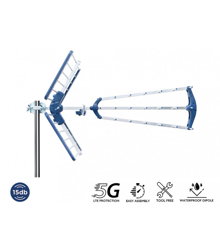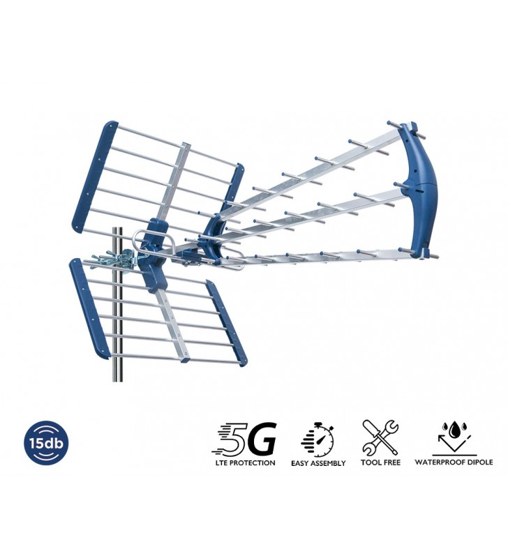 Η ΤΡΙΠΛΗ κεραία EDISION TALOS 15db 5G 21-48, είναι για λήψη Επίγειων Ψηφιακών τηλεοπτικών καναλιών 21 έως και 48 UHF. Με την διάταξη ΤΡΙΠΛΟΥ κατευθυντήρα, παρέχει ισχυρή απολαβή 15db και ταυτόχρονα, αποκοπή παρεμβολών απο τις συχνότητες 4G & 5G LTE. Διαθέτει υψηλής ποιότητας κατασκευή απο αλουμίνιο και ποιοτικά συνθετικά υλικά, μαζί με 'παξιμάδια' τύπου πεταλούδα για εύκολη και ασφαλή συναρμολόγηση. Σε συνδυασμό με την στιβαρή κατασκευή και απόδοση τριπλής κεραίας, αποτελεί ιδανική επιλογή για κάθε εγκατάσταση το σημείο της οποίας έχει συνθήκη λήψης Επίγειου Ψηφιακού σήματος για την οποία χρειάζεται μια αναβαθμισμένη ΤΡΙΠΛΗ κεραία.