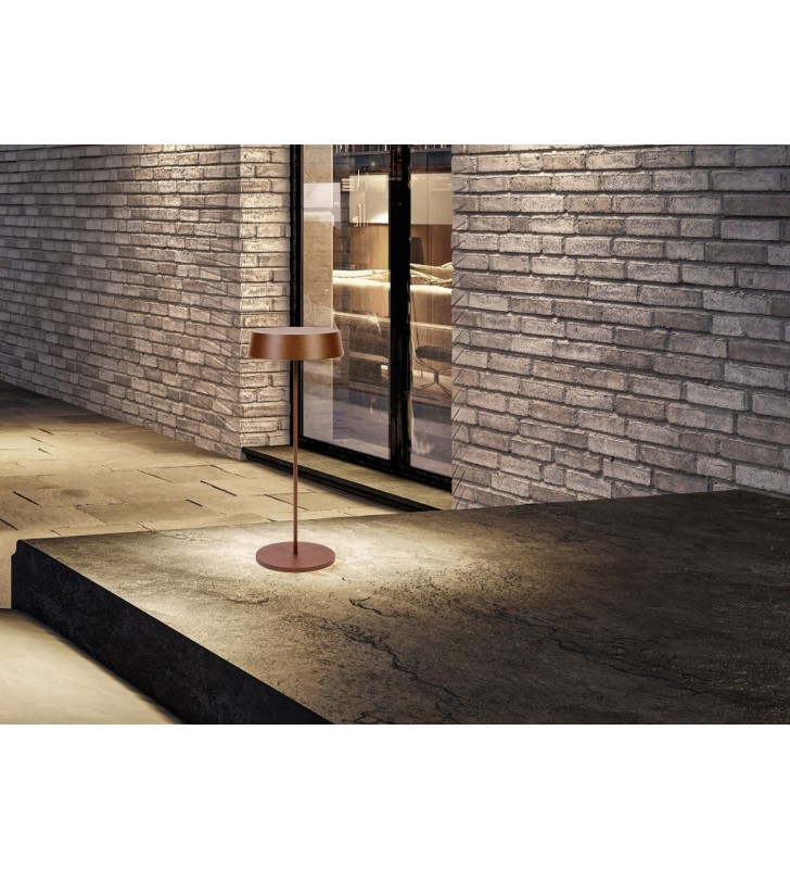 Επιτραπέζιο επαναφορτιζόμενο φωτιστικό Led, 2x2200mA lithium batteries, 2.2W, 3000K, 196lm, CRI>85, IP54, o12x29.5cm, καφέ σκουριάς