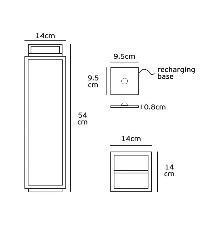 Επιδαπέδιο επαναφορτιζόμενο φανάρι Led, 2x2200mA lithium batteries, 2.2W, 3000K, 180lm, CRI>85, IP54, 14x14x54cm, μαύρο