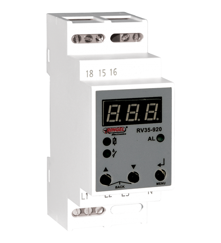 RINGEL RV35-920 Τριφασικός επιτηρητής τάσης Ράγας, απουσία φάσης, διαδοχής, ασυμμετρίας με άνω, κάτω όριο, χρόνο πτώσης και χρόνο επαναφοράς