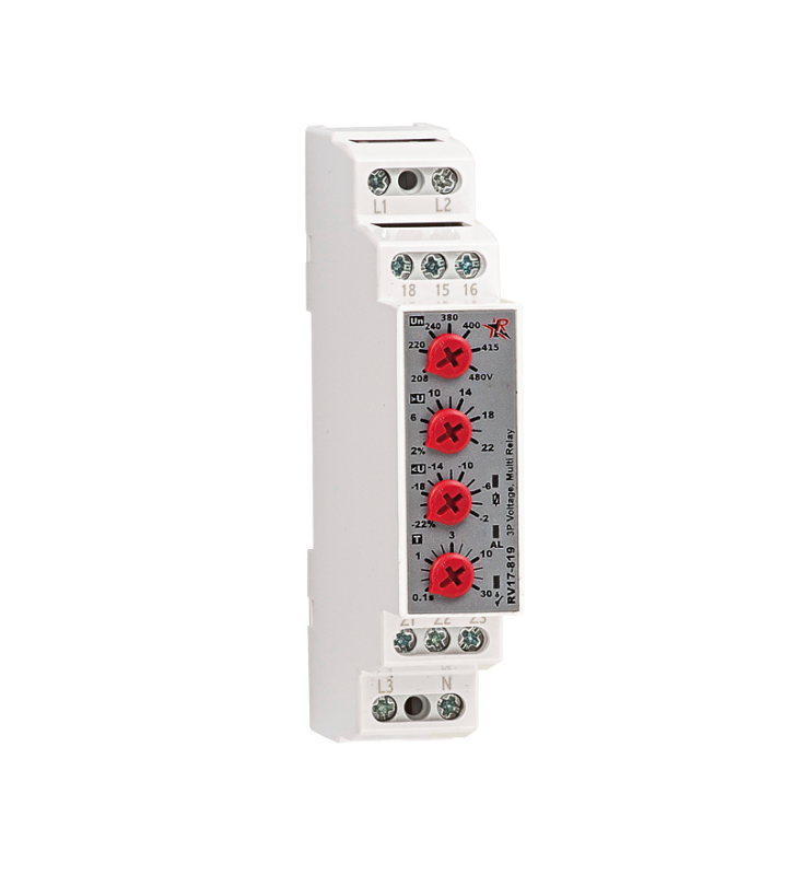 RINGEL RV17-819 Τριφασικός επιτηρητής τάσης Ράγας με άνω και κάτω όριο ρύθμισης, επιλογή ονομαστικής τάσης, χρόνο πτώσης ή χρόνο επαναφοράς και επιτήρηση ουδετέρου
