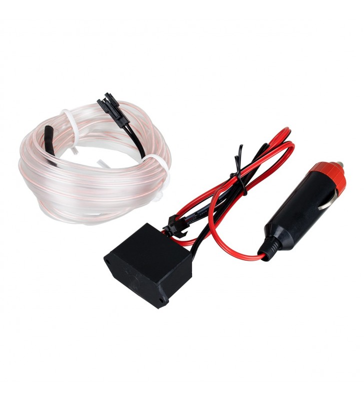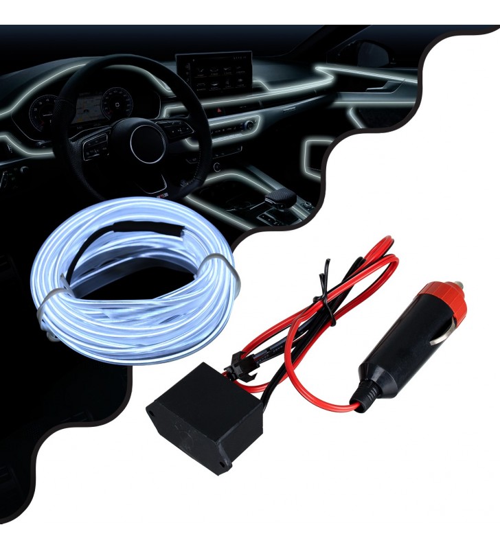 GloboStar® 82200 TUBE 360° Degree Διακοσμητική EL-Wire Neon Αυτοκινήτου Κορδόνι ΣΕΤ 3m 1W/3m 30lm/m 360° DC 12V με Βύσμα Αναπτήρα Αυτοκινήτου Αδιάβροχη IP68 Ψυχρό Λευκό 6000K
