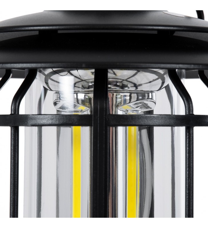 GloboStar® 85692 Αυτόνομο Επαναφορτιζόμενο Φανάρι Camping LED 5W USB 2.0 με Επαναφορτιζόμενη Μπαταρία 1 x 18650 2000mAh Li-ion - IP20 - Dimmable - Μαύρο με Διάφανο Γυαλί - Θερμό Λευκό 3000K Φ12 x Υ17cm