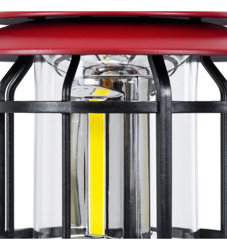GloboStar® 85694 Αυτόνομο Επαναφορτιζόμενο Φανάρι Camping LED 5W USB 2.0 με Επαναφορτιζόμενη Μπαταρία 1 x 18650 2000mAh Li-ion - IP20 - Dimmable - Κόκκινο με Διάφανο Γυαλί - Θερμό Λευκό 3000K Φ12 x Υ17cm