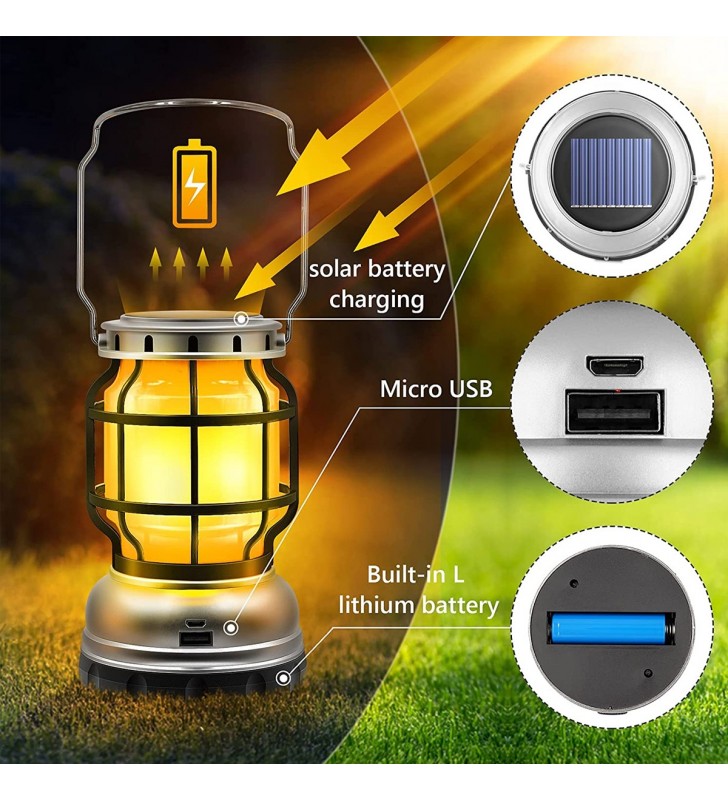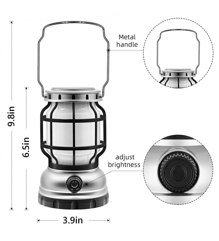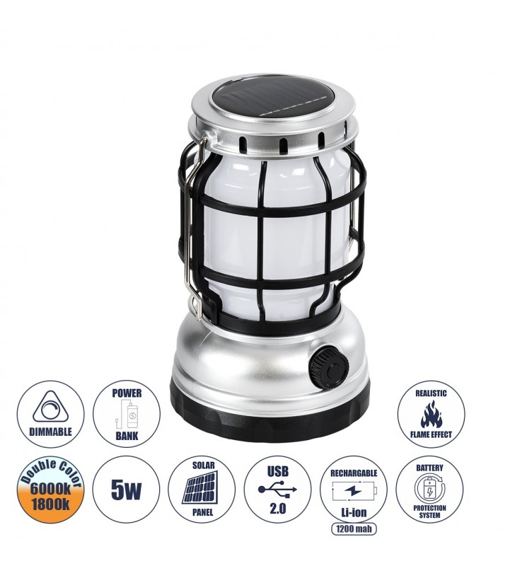 GloboStar 85692 Αυτόνομο Επαναφορτιζόμενο Φανάρι Camping LED 5W - Dimmable - Μαύρο - 3000K