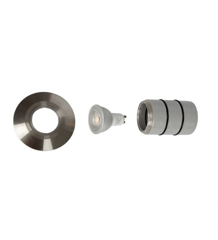 Φωτιστικό δαπέδου χωνευτό, GU10 Max 12W (LED), Δαχτυλίδι ανοξείδωτο 304. IP65, o10x8.5cm, νίκελ ματ