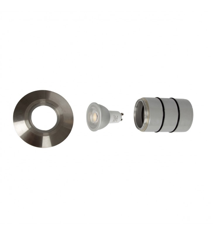 Φωτιστικό δαπέδου χωνευτό, GU10 Max 12W (LED), Δαχτυλίδι ανοξείδωτο 316. IP65, o10x8.5cm, νίκελ ματ