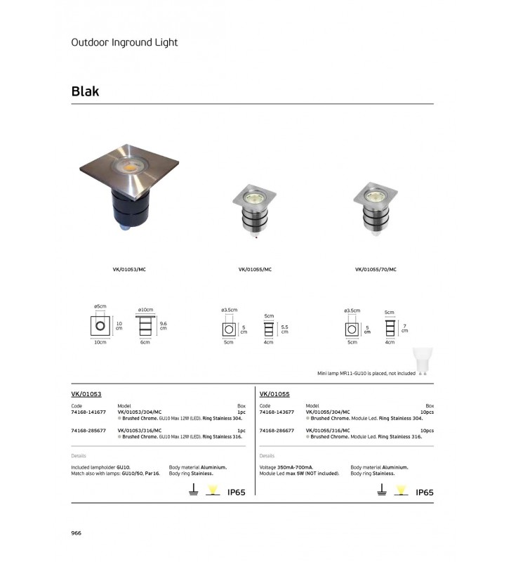 Φωτιστικό δαπέδου χωνευτό, Module Led, 350mA-700mA, Δαχτυλίδι ανοξείδωτο 316. IP65, 5x5x5.5cm, νίκελ ματ