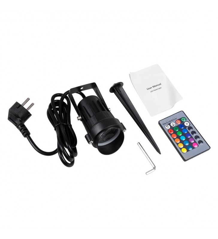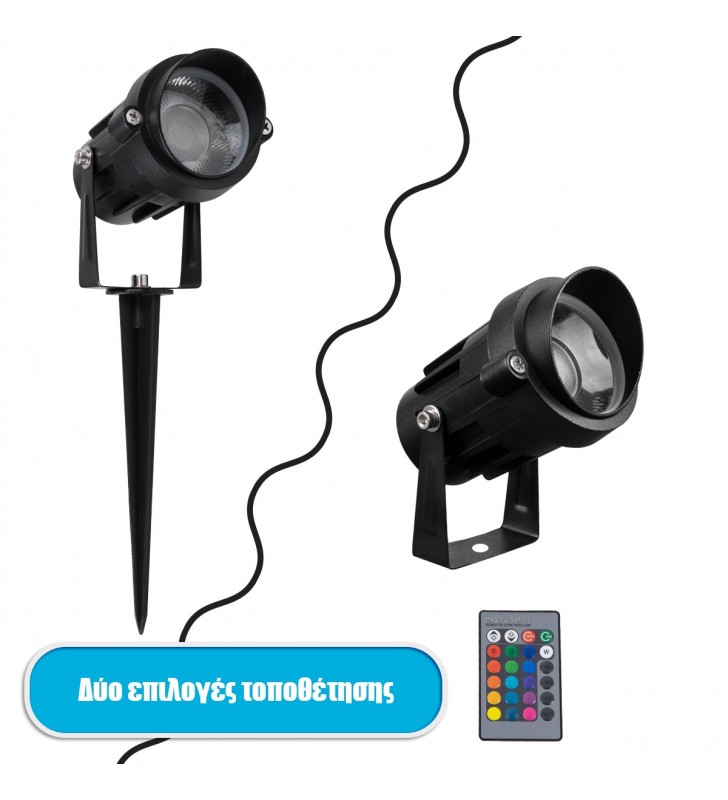 GloboStar® 85814 Προβολάκι Κήπου Καρφωτό - Δαπέδου COB LED 10W 1000lm 35° AC 230V με Ασύρματο Χειριστήριο IR Αδιάβροχο IP66 Πολύχρωμο RGB Dimmable
