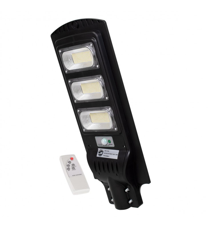 GloboStar 71552 Αυτόνομο Ηλιακό Φωτιστικό Δρόμου Street Light LED SMD 150W 12000lm με Ενσωματωμένη Μπαταρία Li-ion 9000mAh - Φωτοβολταϊκό Πάνελ με Αισθητήρα Ημέρας-Νύχτας PIR Αισθητήρα Κίνησης και Ασύρματο Χειριστήριο Αδιάβροχο IP65 Ψυχρό Λευκό 6000K
