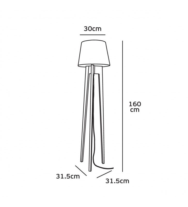 Φωτιστικό δαπέδου ξύλινο, 240V, E27, Max 53W, IP20, o30x160cm, ξύλινο με λευκό καπέλο