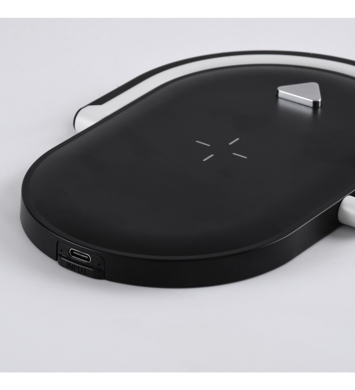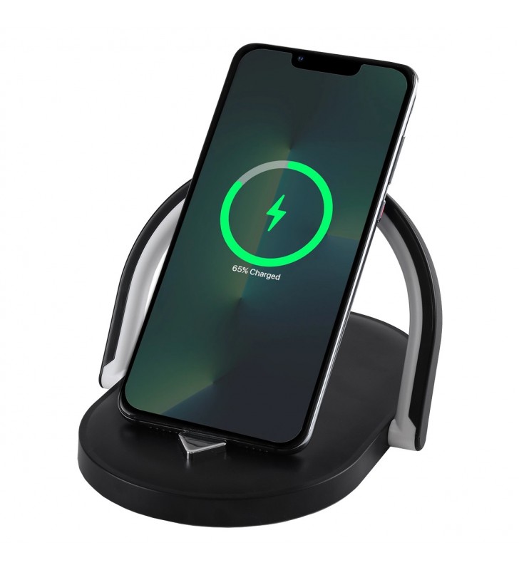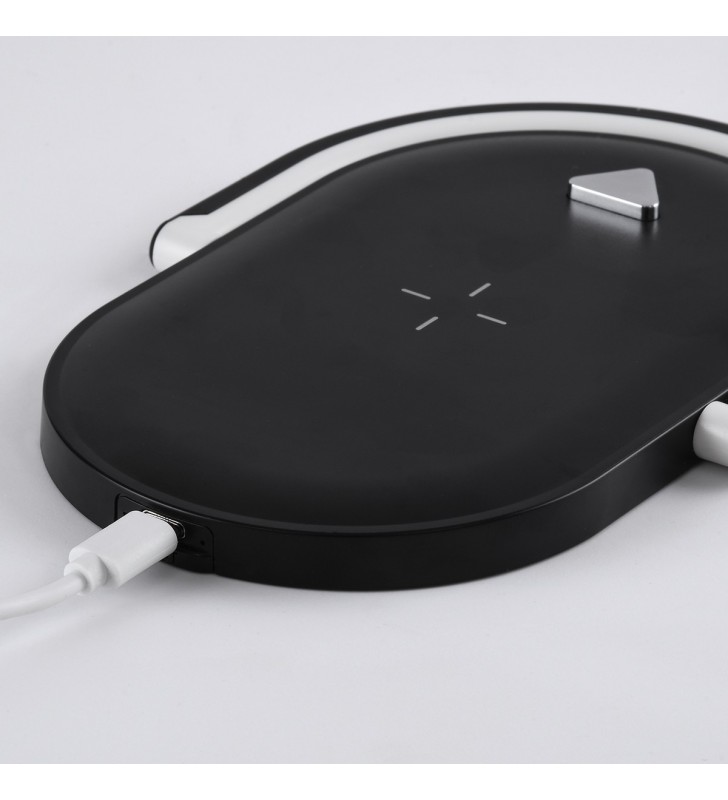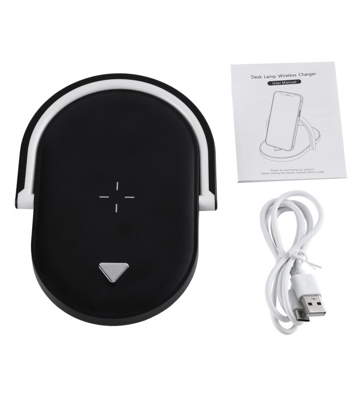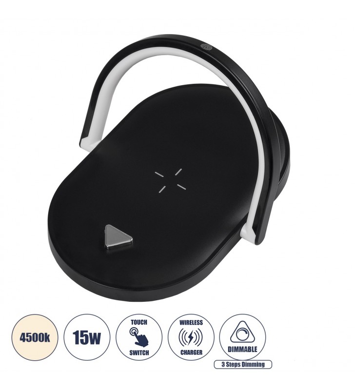 GloboStar® ECLIPSE 76558 Μοντέρνο Επιτραπέζιο Φωτιστικό Πορτατίφ LED 15W 1200lm 180° AC 230V - με Ασύρματη Φόρτιση - Wireless Charger - Διακόπτη Αφής με 3 Εντάσεις Φωτισμού Φυσικό Λευκό 4500K Dimmable - Μ17 x Π13 x Υ10 - Μαύρο