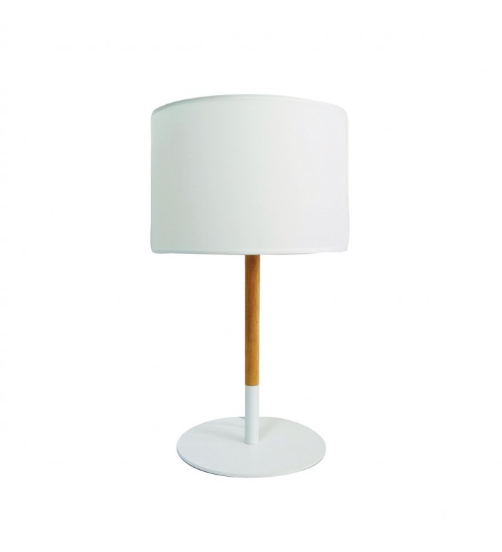 Φωτιστικό επιτραπέζιο ξύλινο, 240V, E27, Max 40W, IP20, o25x43cm, ξύλινο-μεταλλικό με λευκό καπέλο