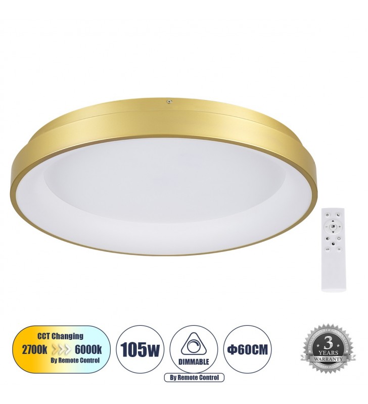 GloboStar MARGARET 61403 Φωτιστικό Οροφής Design LED CCT 54W Dim Φ57 x Υ12cm - Χρυσό