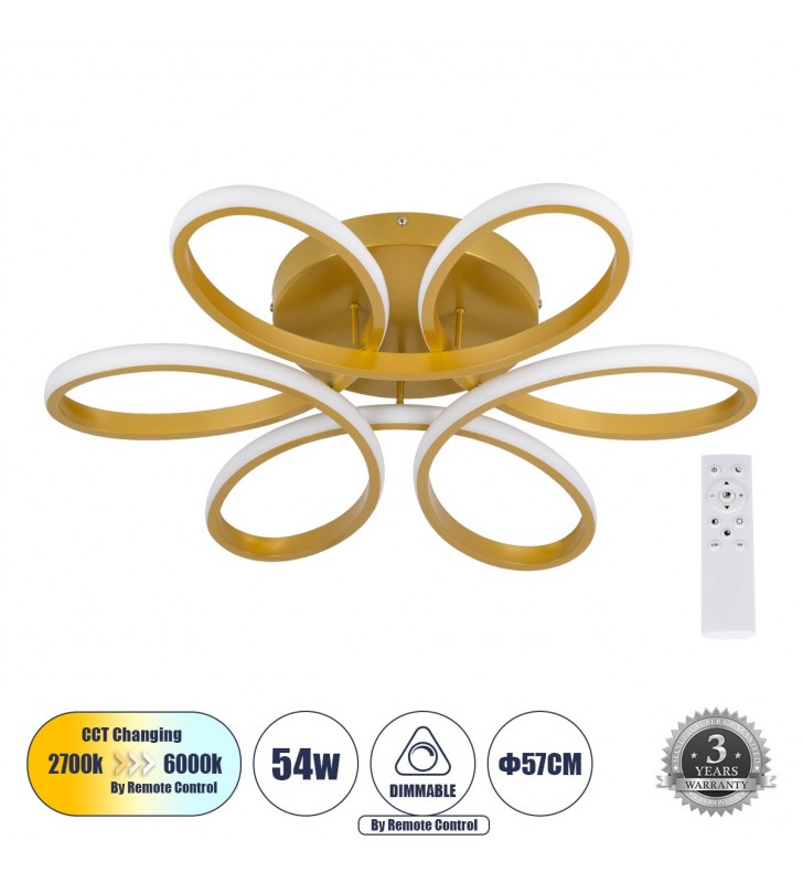 GloboStar MARGARET 61403 Φωτιστικό Οροφής Design LED CCT 54W Dim Φ57 x Υ12cm - Χρυσό