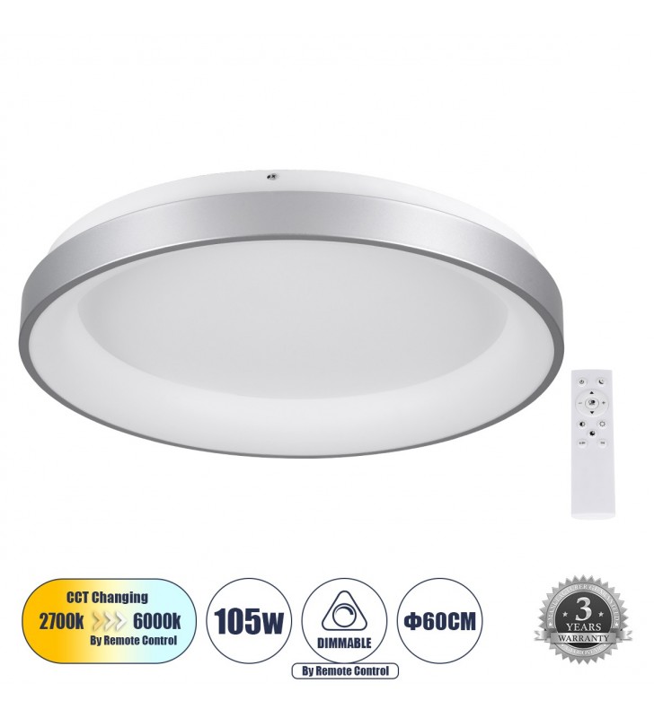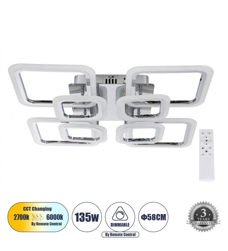GloboStar ROYAL-S 61326 Φωτιστικό Οροφής Design LED CCT 135W - Dimmable Μ58.5 - Νίκελ