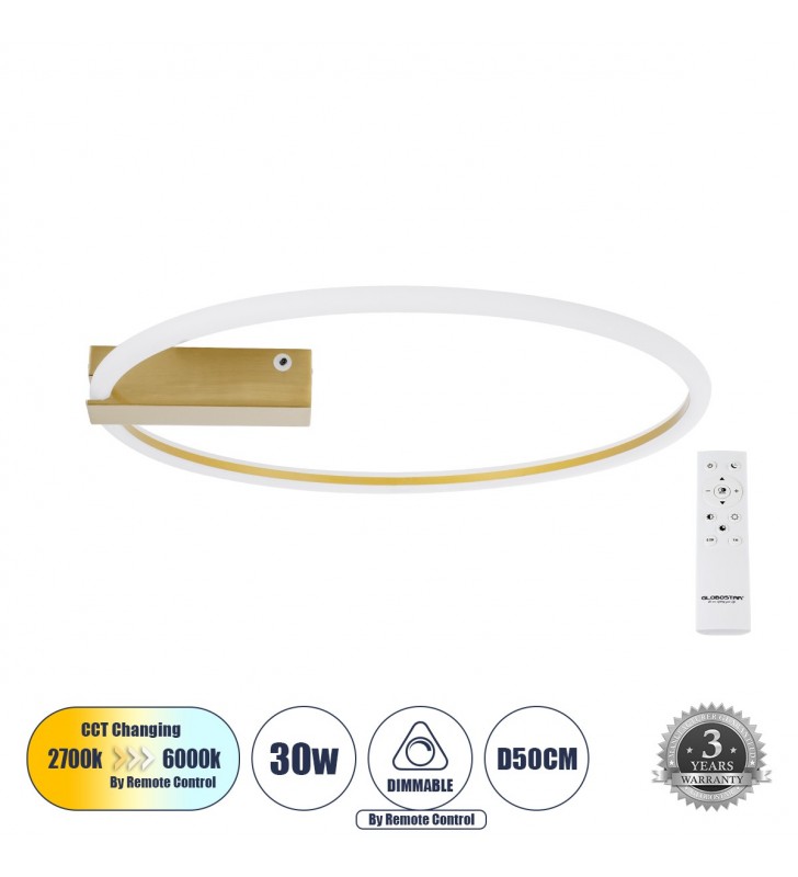 GloboStar SALEM 61235 Πλαφονιέρα Οροφής Δαχτυλίδι-Κύκλος LED CCT 75W Dim Φ45cm - Χρυσό