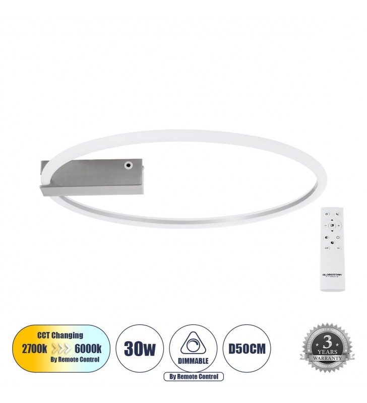 GloboStar ARIANA 61036 Πλαφονιέρα Οροφής Κύκλος LED CCT 55W Dimmable Φ48cm - Ανθρακί