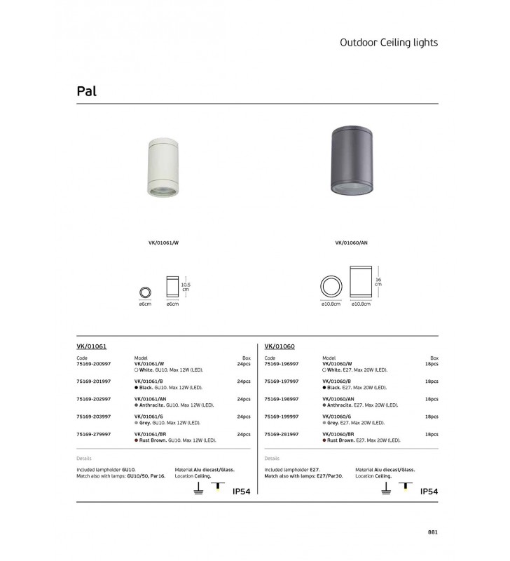 Σποτ οροφής, 240V, GU10/PAR16, Max 12W (LED), IP54, o6x10.5cm, καφέ σκουριάς