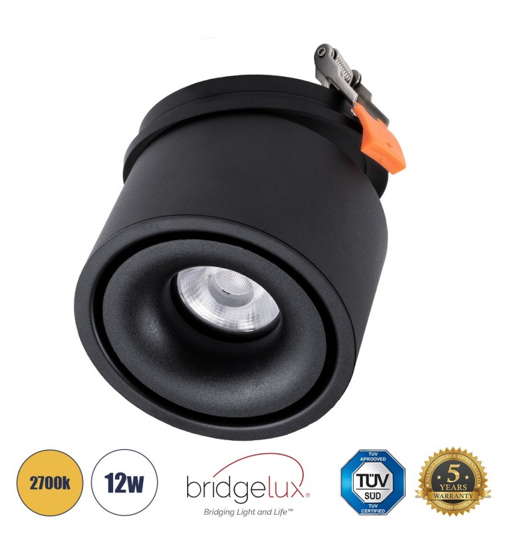 GloboStar OMEGA 60297 Χωνευτό LED Spot Downlight Φ10cm 12W Στρόγγυλο, Μαύρο - 2700K - Bridgelux COB