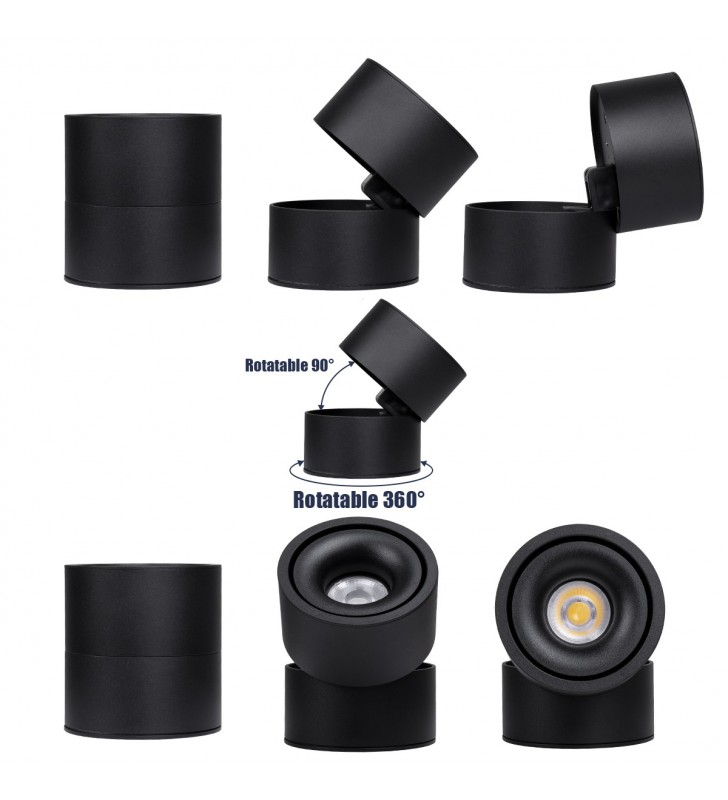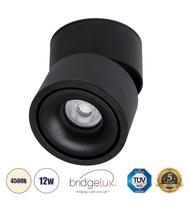 GloboStar® OMEGA 60300 Επιφανειακό LED Spot Downlight Φ10cm 12W 1404lm 36° AC 220-240V IP20 Φ10 x Υ10.5cm - Στρόγγυλο - Μαύρο - Φυσικό Λευκό 4500K - Bridgelux COB - 5 Years Warranty