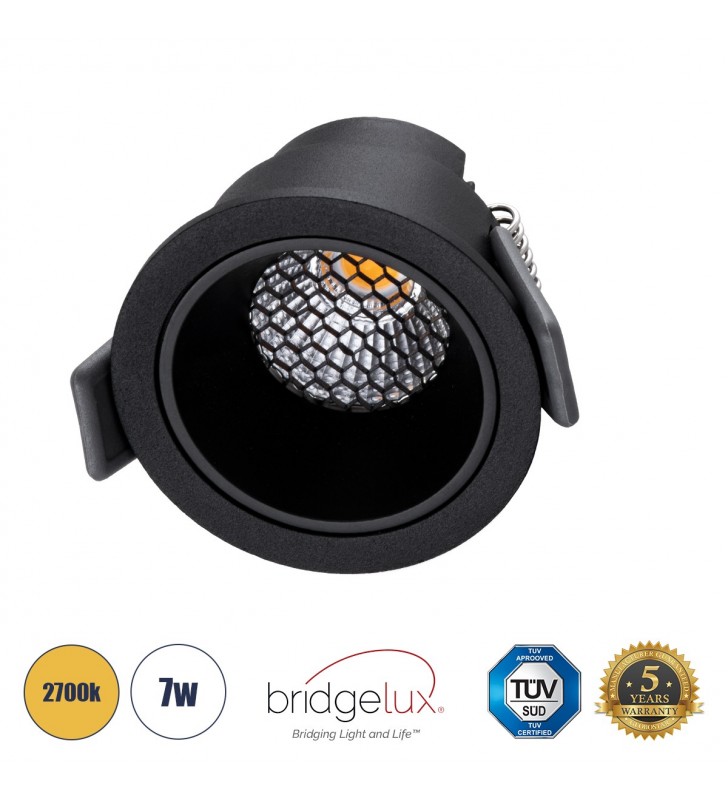 GloboStar PLUTO-S 60251 Χωνευτό LED Spot Downlight Φ6.4cm 7W 38° Στρογγυλό, Μαύρο - Θερμό 2700K