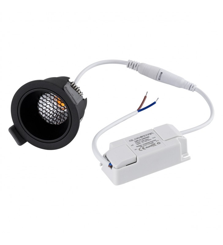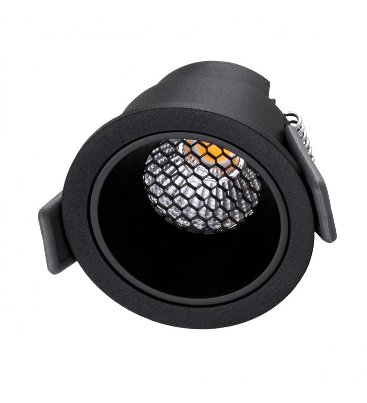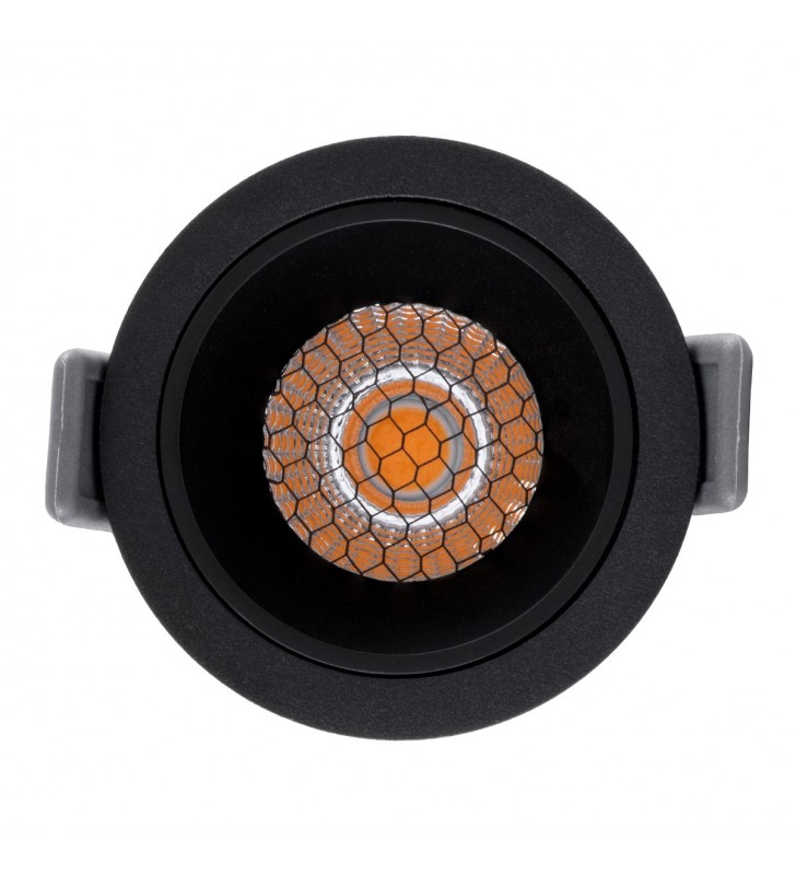GloboStar® PLUTO-S 60251 Χωνευτό LED Spot Downlight TrimLess Φ6.4cm 7W 875lm 38° AC 220-240V IP20 Φ6.4 x Υ4.9cm - Στρόγγυλο - Μαύρο & Anti-Glare HoneyComb - Θερμό Λευκό 2700K - Bridgelux COB - 5 Years Warranty