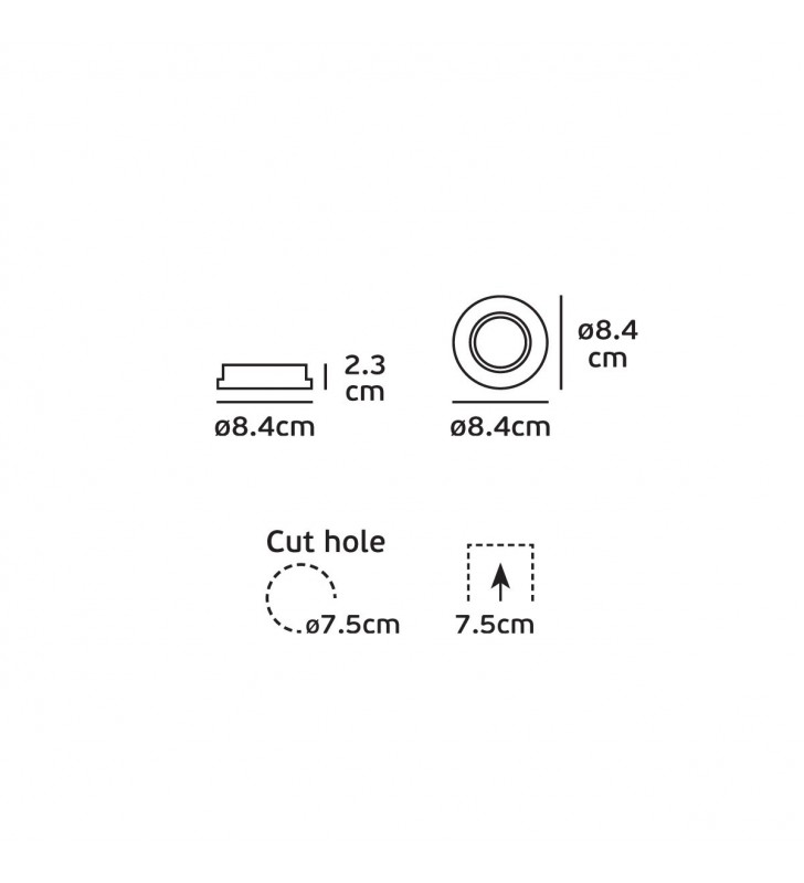 - Cut out: o7.5cm depth 7.5cm
