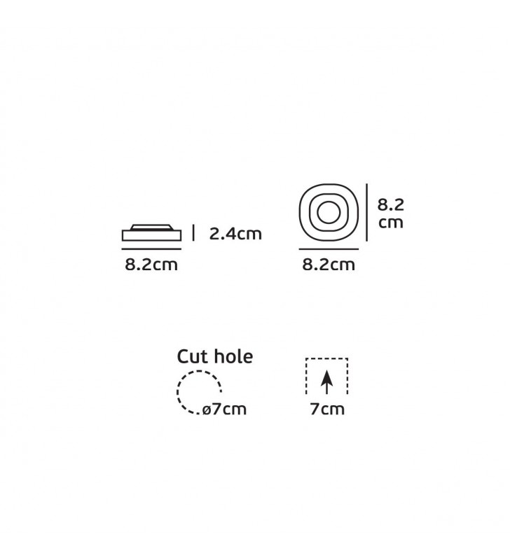 - Cut out: o7cm depth 7cm