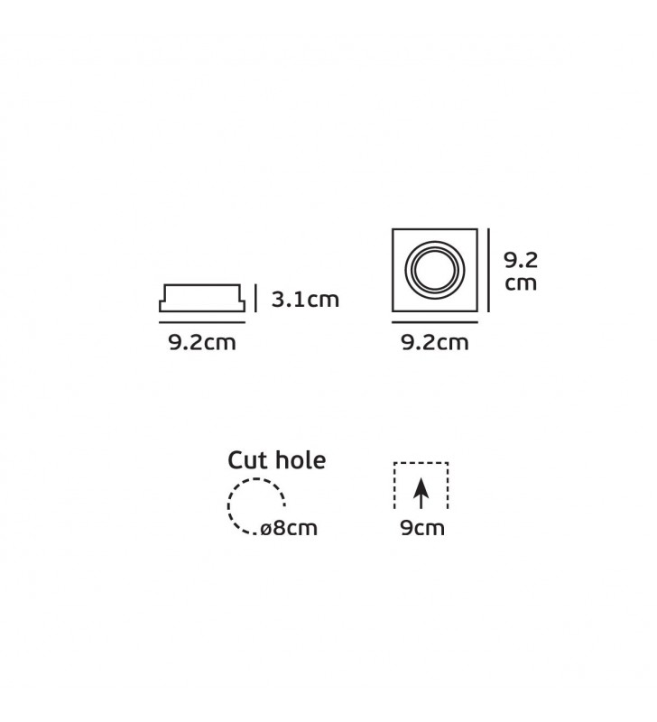 - Cut out: o8cm depth 9cm