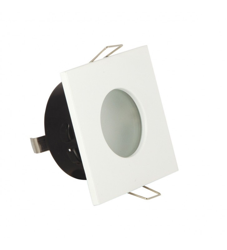 Σποτ τετράγωνο, σταθερό, με γυαλί ματ, GU5.3/PAR16, Max 12W (LED), IP65, 8.5x8.5x4.6cm, λευκό