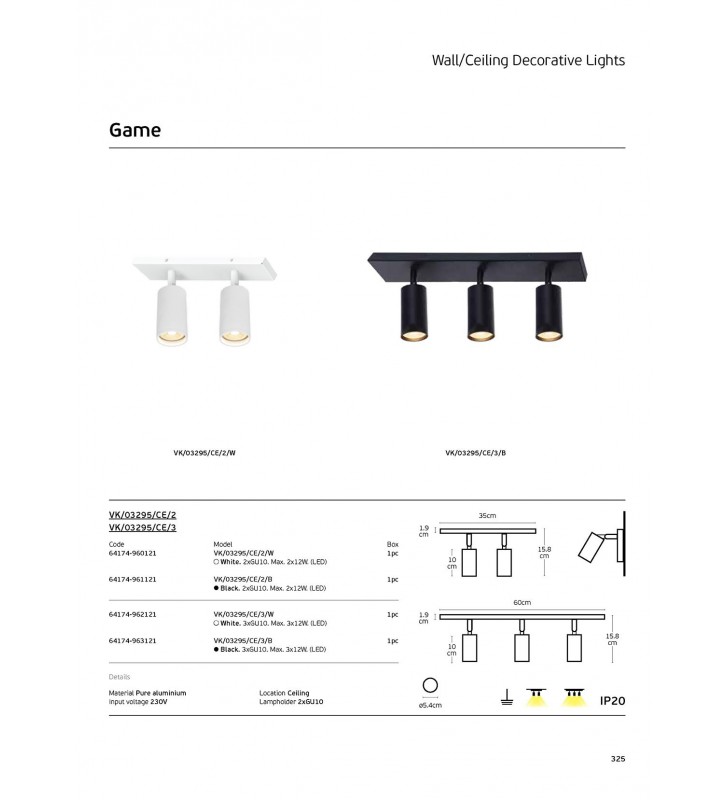 Φωτιστικό τοίχου, μαύρο. 2xGU10. Max. 2x12W. (LED). IP20