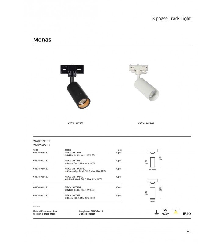 3-phase φωτιστικό ράγας, GU10/PAR16, max 12W (LED), L13cm, IP20, λευκό - Vk Led (VK/04196TR/W) - Vk Led (64174-942121)