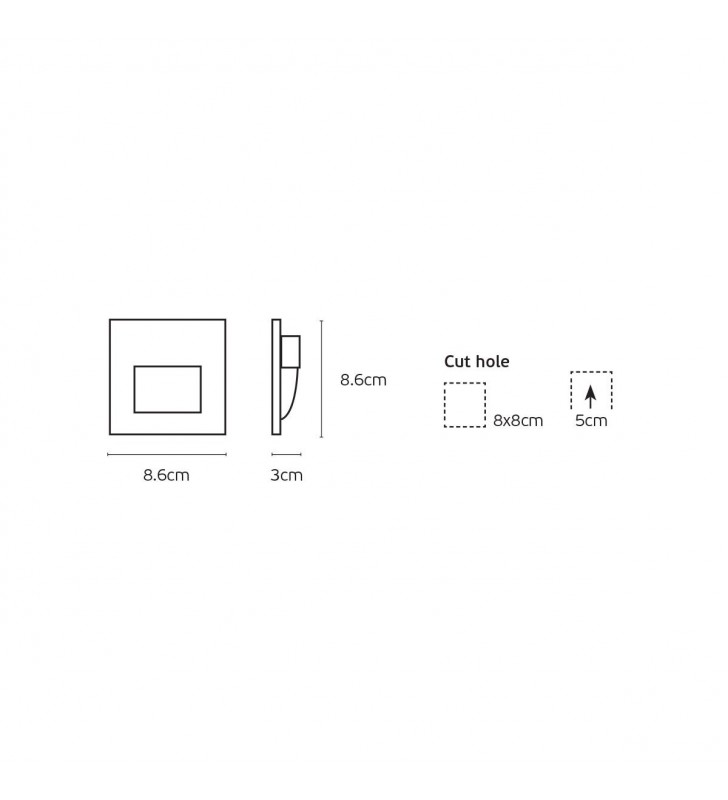 - Cut out: 8x8cm, Η 5cm