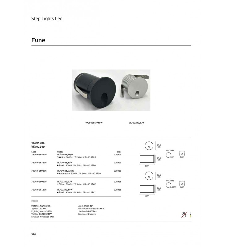 Φωτιστικό σκαλοπατιών Led, λευκό. 3000K. 1W. 90lm. CRI>80. IP20