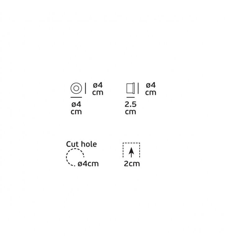 - Cut out: o4cm H2cm