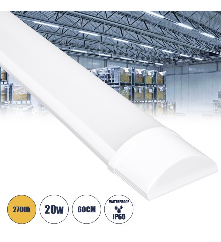 GloboStar® 60157 LED Γραμμικό Βιομηχανικό Φωτιστικό Tri-Proof 60cm 20W 1808lm 120° AC 220-240V Αδιάβροχο IP65 Μ60 x Π7.5 x Υ2.5cm Θερμό Λευκό 2700K