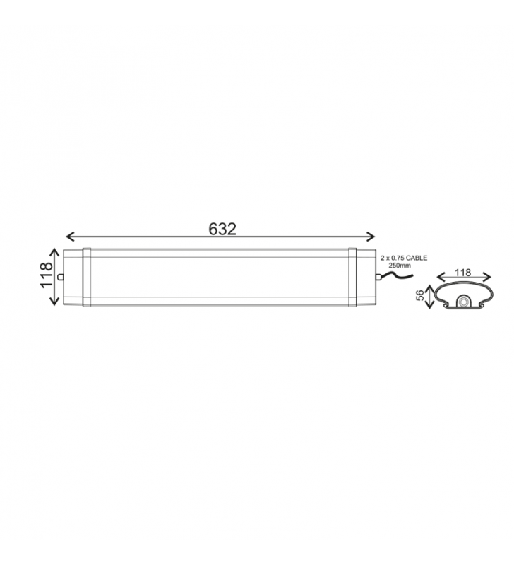 Στεγανό γραμμικό φωτιστικό LED 60W 632mm 6000K 5490Lm IP66 230VAC - ACA (TETEH6060)