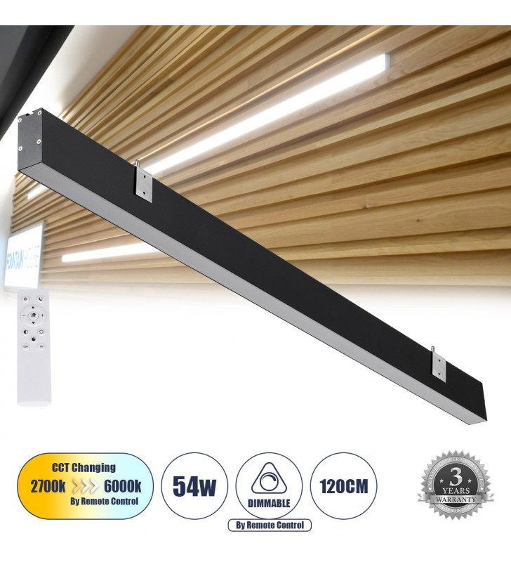 GloboStar® FELIX 61028-W Γραμμικό Φωτιστικό Τοίχου - Απλίκα Linear LED CCT 54W 6500lm 120° AC 220-240V Μ120 x Π3.5 x Υ7cm - Εναλλαγή Φωτισμού μέσω Τηλεχειριστηρίου All In One Ψυχρό 6000k+Φυσικό 4500k+Θερμό 2700k Dimmable - Μαύρο - 3 Years Warranty