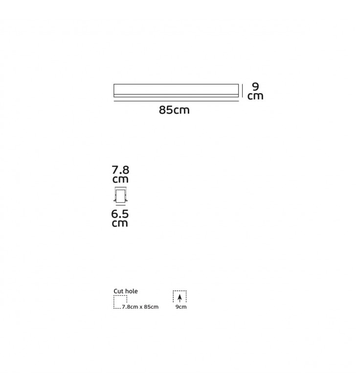 - Cut out: 85x7.8x9cm