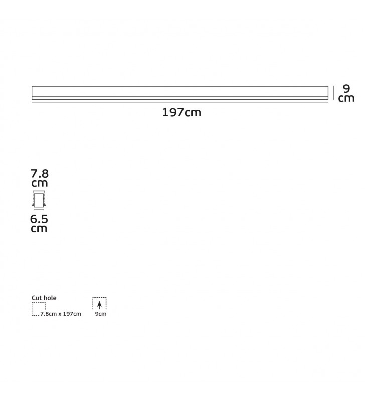 LED Γραμμικό φωτιστικό, χωνευτό Trimless, 37W, 5.600lm, 197cm, 3000K, 220-240V, IP20