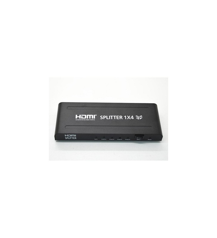 FULL HD Splitter HDMI 1 εισόδου και 4 εξόδων με υποστήριξη 3D. Tαυτόχρονη προβολή του HDMI σήματος σας σε 2 τηλεοράσεις. Επιτρέπει την εικόνα και τον ήχο από μια πηγή με έξοδο HDΜΙ να εμφανίζεται ταυτόχρονα σε 4 οθόνες (τηλεόραση υψηλής ευκρίνειας ή HD προβολέα) με εισόδους HDMI. Χαρακτηριστικά: Κομψός και συμπαγής σχεδιασμός Εύκολο στην χρήση, Plug and Play Συμβατό με HDMI 1.4 Είσοδος: 1 x HDMI female 19pin Έξοδοι: 4 x HDMI female 19pin HDMI Resolution: 576p/480p/720p/1080i/1080p Bandwidth: ως 340MHz (10.2 Gbps): ως 4.95GHz HDCP Compliant 3D Support Υποστηρίζει συμπιεσμένα και ασυμπίεστα audio formats όπως 7.1CH, LPCM, DTS-HD και Dolby True HD Τροφοδοσία: 5V / 1A (περιλαμβάνει τροφοδοτικό) Συμβατό με OTE TV & NOVA